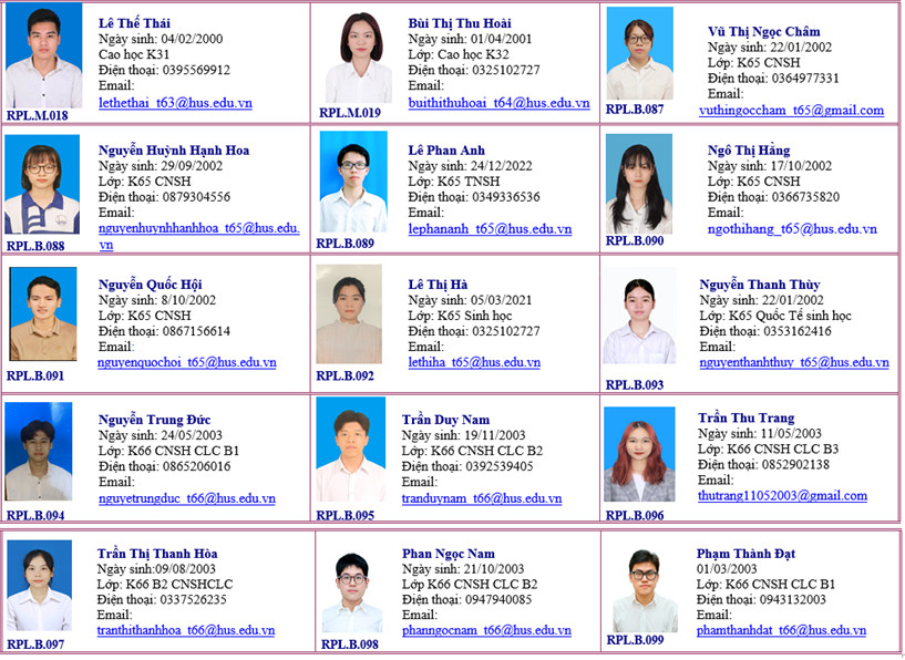 5. Danh sách NCS, HVCH và Sinh viên của phòng