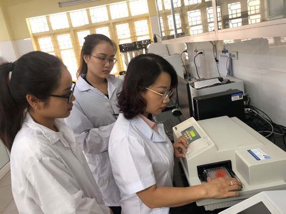 PGS. TS. Bùi Thị Việt Hà đang hướng dẫn các sinh viên triển khai thí nghiệm